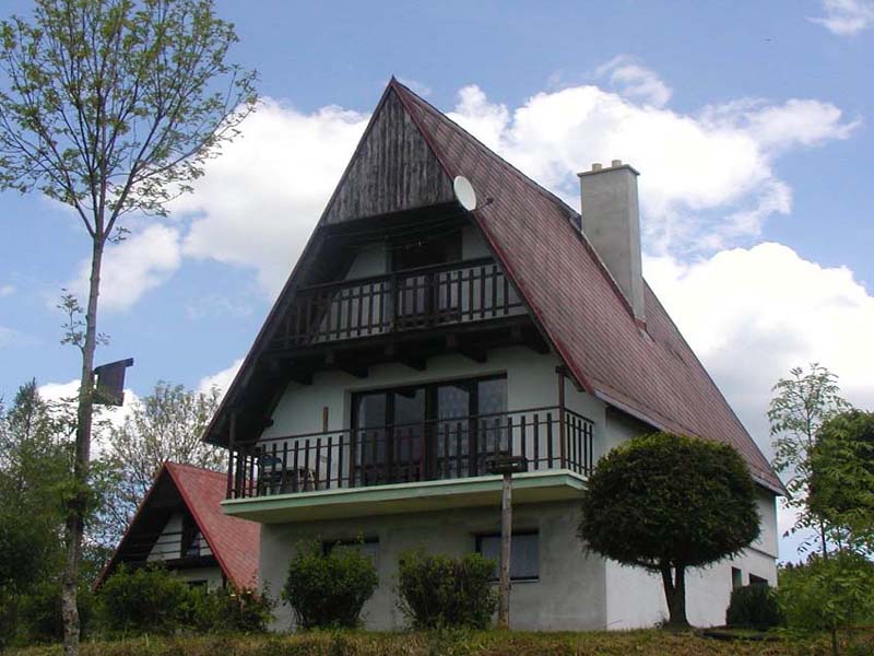 Das Ferienhaus ist mit zwei Schlafräumen 1x2 und 1x2 + schmales 1,5 Doppelbett im Dachgeschoß eingerichtet. Zusätzlich ist im Wohnzimmer erste Etage eine Schlafcouch für 2 Person sowie im Gesellschaftraum Ergeschoß ein Bett verfügbar. Im Wohnzimmer ist ein Innenkamin. TV-Sat Empfang. Die Küche ist voll ausgestattet. Der Sanitärbereich ist mit Dusche und WC eingerichtet. Im Kellergeschoß des Hauses befindet sich eine Sauna mit Abkühlbecken. Die Nutzung der Sauna ist inklusive Mietpreis. Gartenmöbel, Grill, Lagerfeuerplatz sowie ein Kinderswimmingpool stehen zur Verfügung. Der Aufenthalt von Hunden ist möglich. Die Gebühr beträgt 35€ pro Woche. Die Zahlung der Hundegebühr sowie der Kaution in Höhe von 100€ erfolgt im Rahmen der Hausübergabe vor Ort. Im Ort Frymburk befinden sich gewerblicher Ruderbootverleih sowie Angelfachgeschäft.